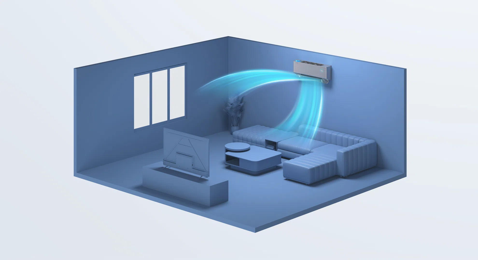 After fresh air is drawn into the indoor unit through the heat exchanger, it is cooled or heated and returned to the room with an accuracy of ±0.5°C, matching the indoor temperature precisely and preventing temperature fluctuations.